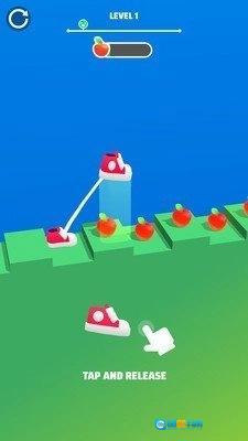 1、操作并不复杂,玩家只需点击屏幕操控运动鞋持续前进就能顺利过关。