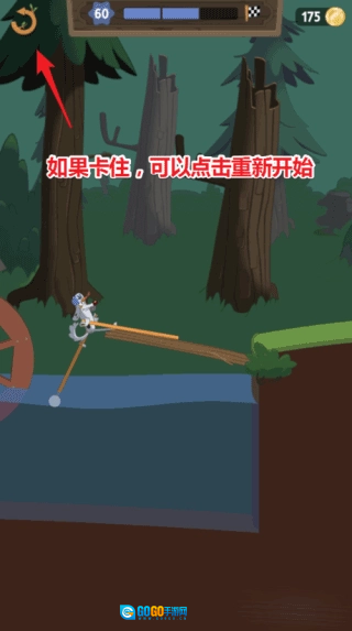 3、在操作过程中,有时也会出现卡住的状况,当无法前进或后退时,可点击左上方的“重新开始”按钮。若已到达检查点,则会从检查点处复活。