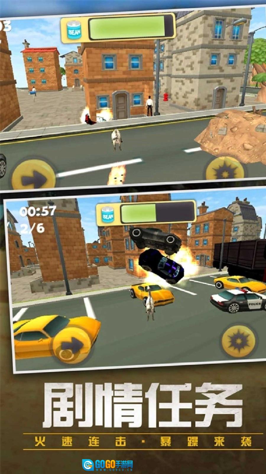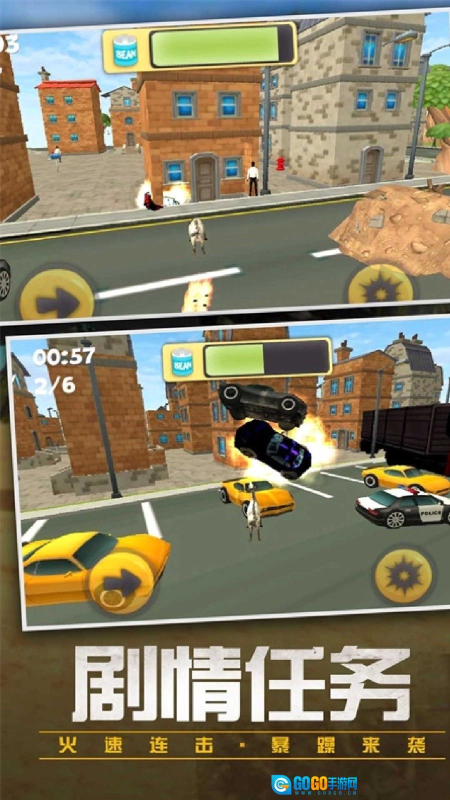 《动物宇宙大联合》是一款动作冒险游戏,在游戏里,脾气火爆的山羊与其他敌人会在城市中展开激烈对抗。玩家需要在城市里持续完成各类剧情任务,探索未知区域并与敌人战斗,还能以自由视角挑战关卡,游戏的操作模式没有限制,只要选择合适的道具就能顺利通过新关卡。