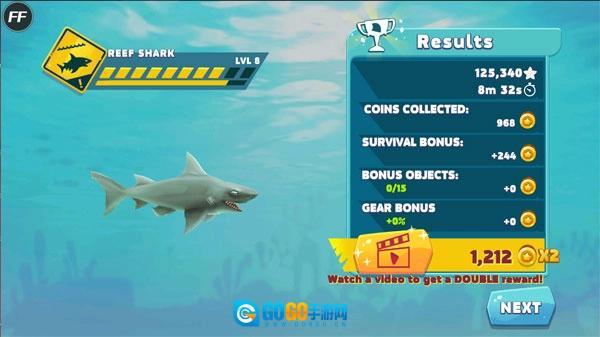 4、完成50项趣味任务,探寻宝藏赢取金币与宝石,可用于提升鲨鱼能力或购置应急道具。