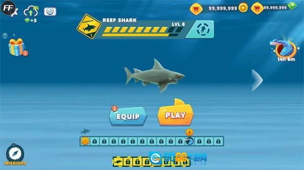 5、逐步解锁多种凶猛的海洋霸主:灰鲭鲨、锤头鲨、虎鲨,直至最顶级的大白鲨。
