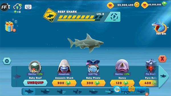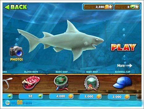 给你的鲨鱼装备升级,换上超酷的配件,要更有力量、游得更快、胃口也更大!每只鲨鱼都得配备耳机、雨伞,还有超炫的喷射背包!