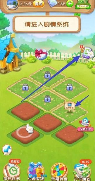 1、按照指引种植各类作物,可消耗钻石加快生长进度,选择三级红包能获取更丰厚的收益。