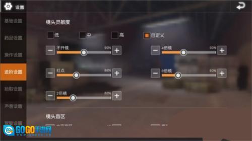 5、进阶设置方面,先从低、中、高三个灵敏度档位里选一个,然后在比赛过程中根据自身情况调整,找到最适合自己、用着最舒服的灵敏度。我选的那个档位大家也可以试试~