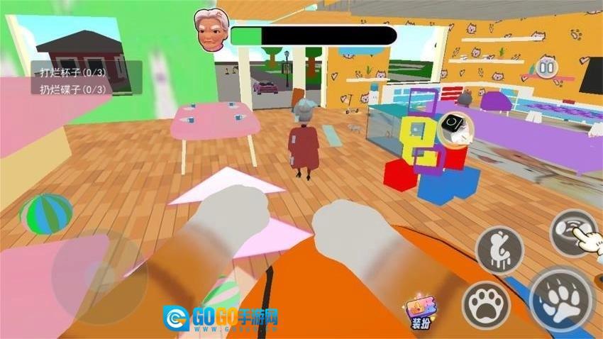 1、游戏主界面左侧显示当前任务列表,顶部为主人情绪状态条,右下角为猫咪特殊行为指令区域。