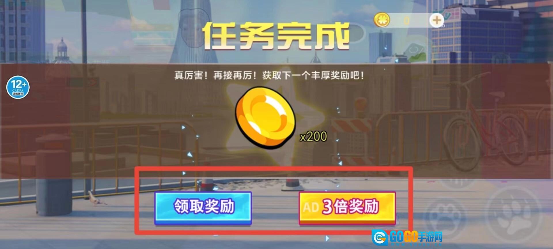 2、成功完成任务后自动弹出奖励结算界面,确认领取后金币立即计入账户并继续游戏进程。