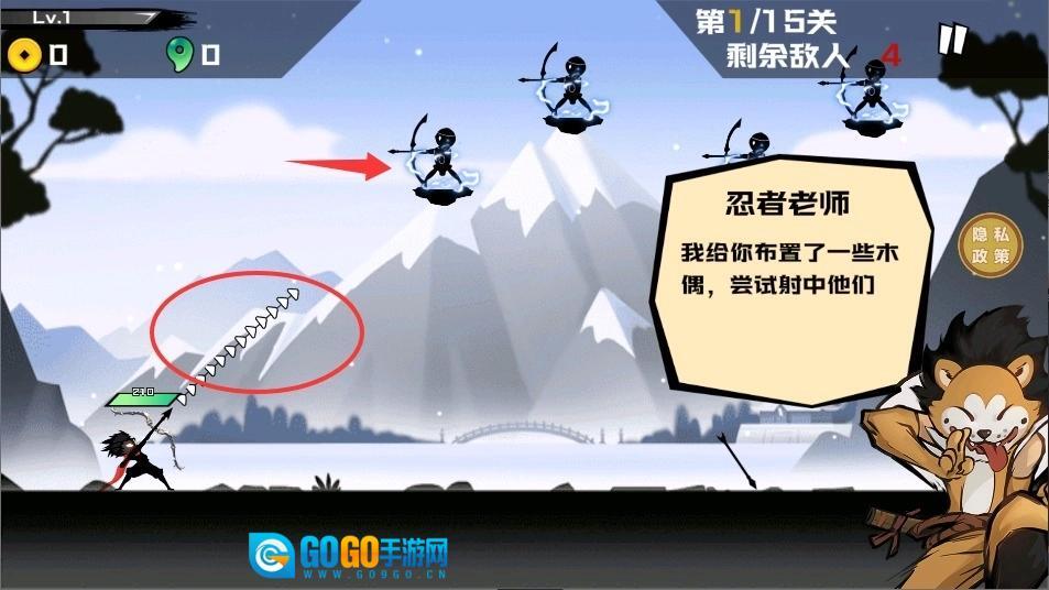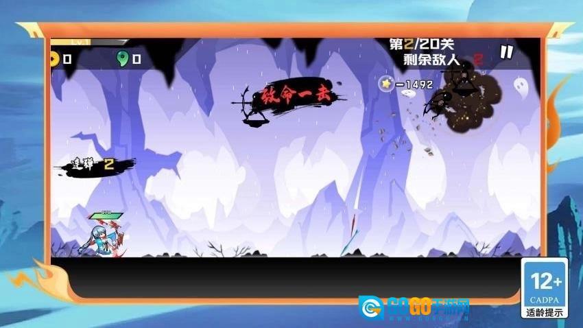 1、经典横版2D射击玩法,操作简单易上手,但深度十足。玩家将操控火柴人弓箭手在武侠世界中展开冒险乐趣。