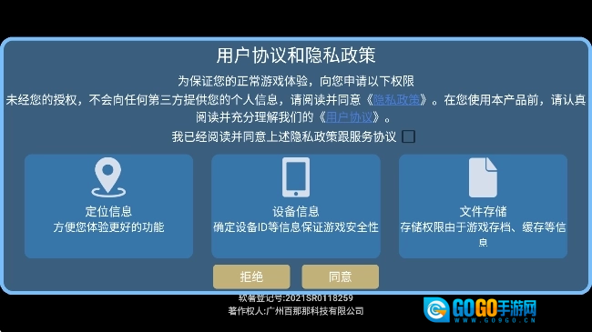 1、同意用户协议,进入游戏。