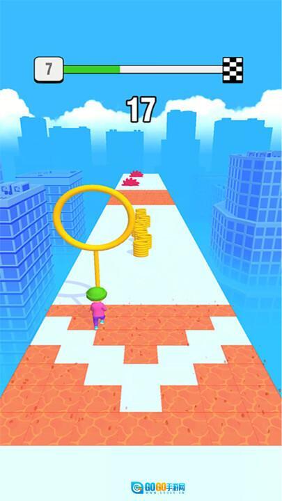 1. 铁环滑行机制:核心玩法结合了跑酷与铁环滑行元素,玩家能够通过铁环套住长棍实现高空滑行,这种别具一格的移动方式与传统跑酷形成差异,让操作的趣味性和策略性得到了提升。