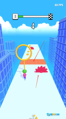 1、操控小人去收集散落在地面上的圈圈碎片,收集到的碎片数量越多,小人手中的圈圈就会变得越大,这对后续的环节会越有帮助。