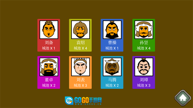 武将难易排名:孙坚、袁绍、董卓、马腾、刘璋、刘表、刘备、曹操。
