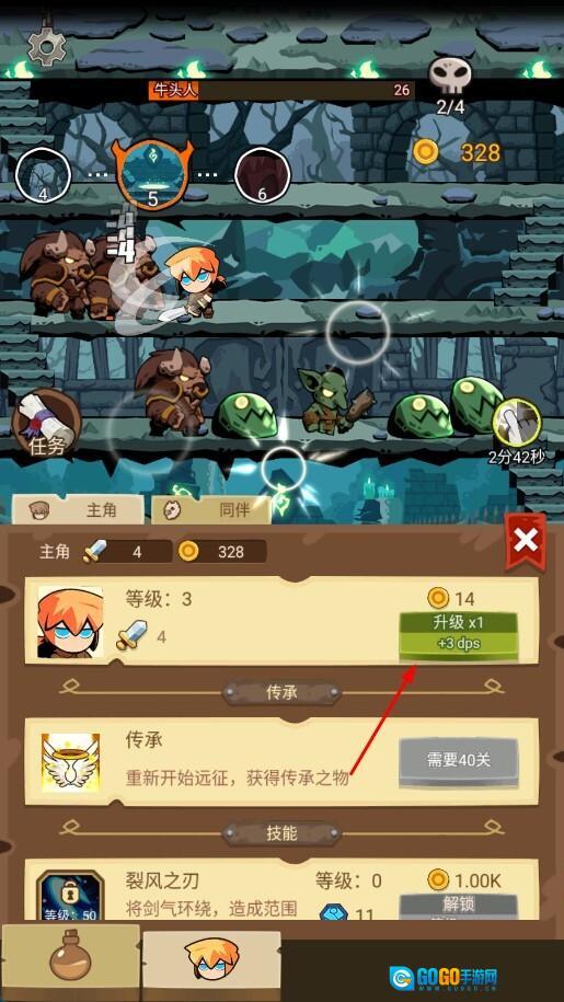 3、通过战斗获得金币后,进入角色界面并点击升级按钮,消耗金币即可提升角色等级,进而增强角色的战斗能力,以便更好地应对后续挑战。
