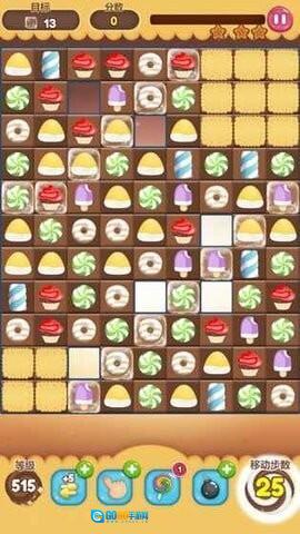 3、设置甜点图标,让你能够水平或垂直匹配3个相同类型的物品。
