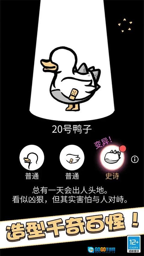 不同的鸭子会出现各种各样的变异情况,有可能是鸭头发生变化,也可能是鸭尾有所不同,翅膀也说不定会产生变异,这些丰富多样的变异让游戏变得十分有趣。