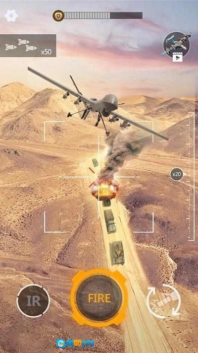 无人机现代战争(DroneModernWar)是一款趣味十足的模拟战争游戏,玩家需要操控无人机对海上船只实施轰炸。游戏初期,你仅能指挥一些基础型号的无人机,随着战功的不断累积,你将解锁更高权限,从而能够调用火力更强大的无人机参与作战。