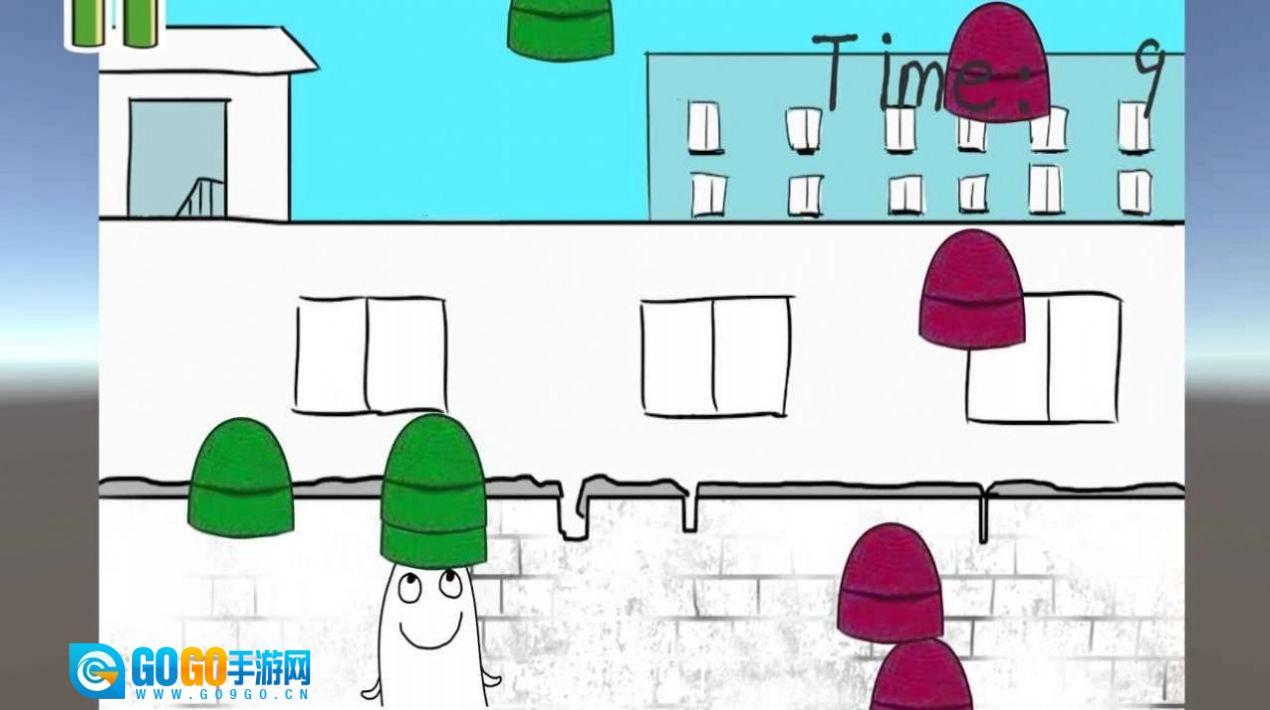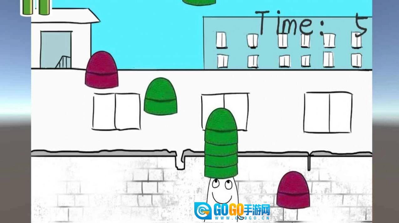 2、这款游戏的核心玩法是收集绿帽子,那些从空中随机掉落的绿帽子会以各不相同的速度下落。