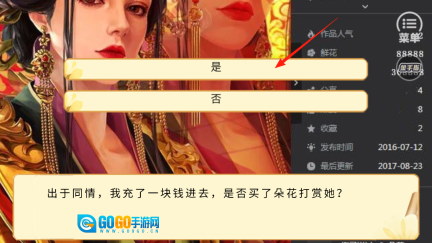 当面临是否买花打赏的抉择时,点击“是”或“否”将触发不同的剧情分支,进而影响后续故事的发展脉络,并对角色行为的塑造产生作用。