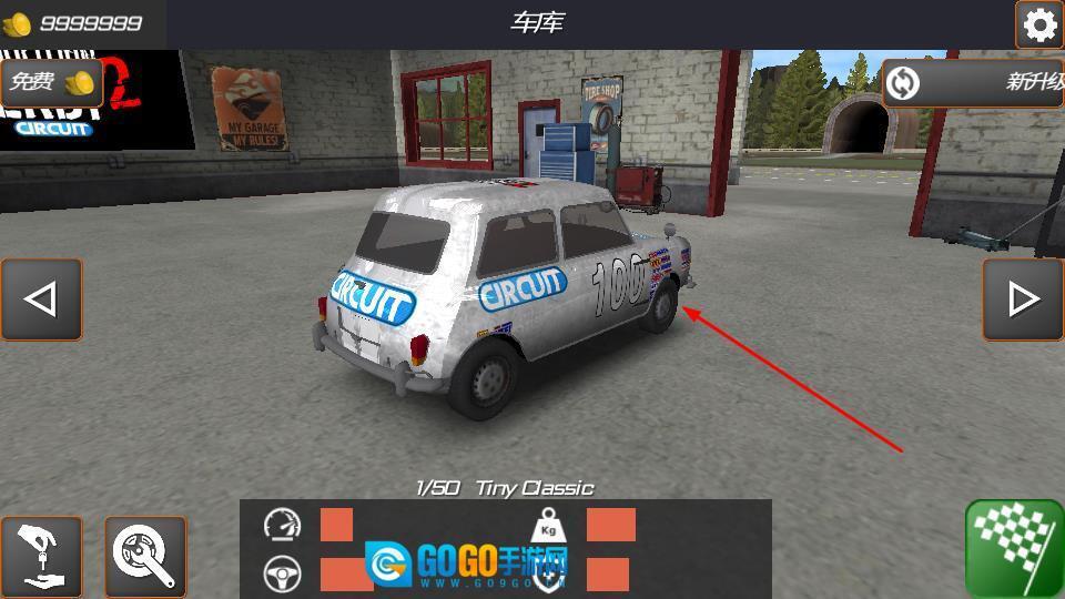 3、在车库中查看Tiny Classic这类车辆时,能够使用金币进行升级操作,进入竞赛后即可操控车辆参与撞击对抗类赛事。