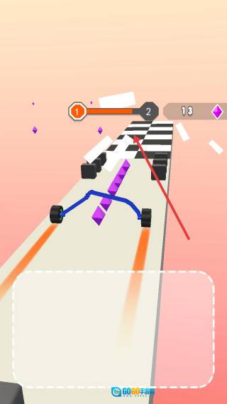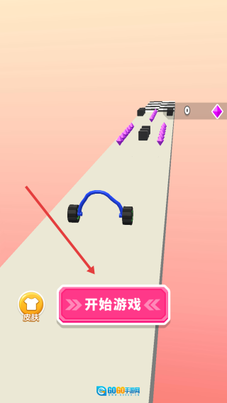 2、画线时要规划好路径,避开像紫色尖刺这类障碍,使车轮顺着线条滚动,朝着终点冲去。