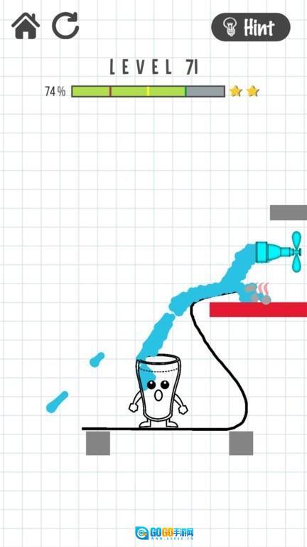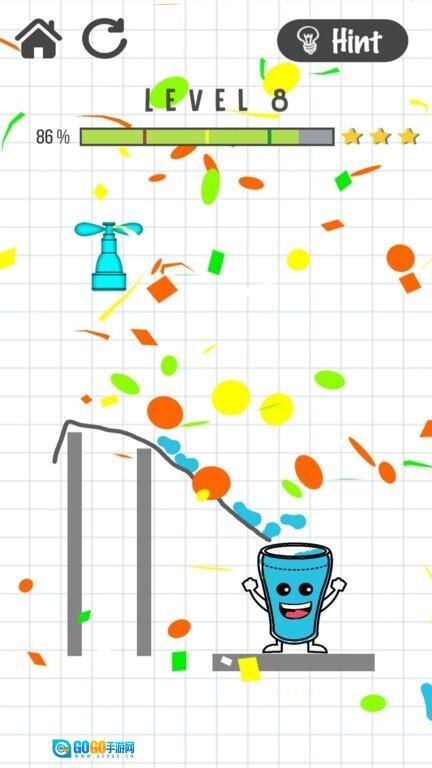 1、在游戏里,玩家得用我们的绘笔来画画,画出虚线,把水引到水杯里去!