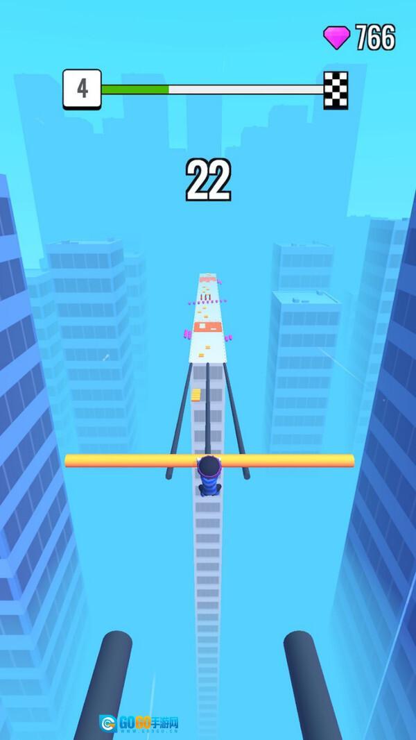 2、在前进的路上收集金币与宝石,当积攒到特定数量时,就能解锁全新的角色皮肤或者杆子款式。