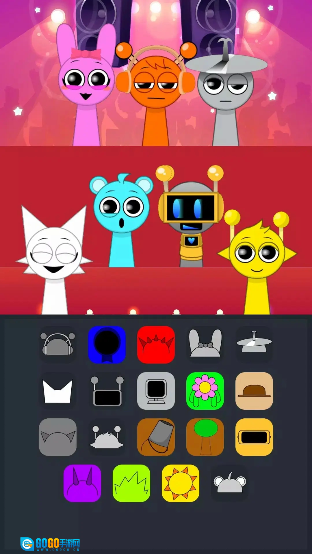 只需将不同颜色的装饰拖到角色身上,即可混合出属于自己的节奏感极强的音乐。