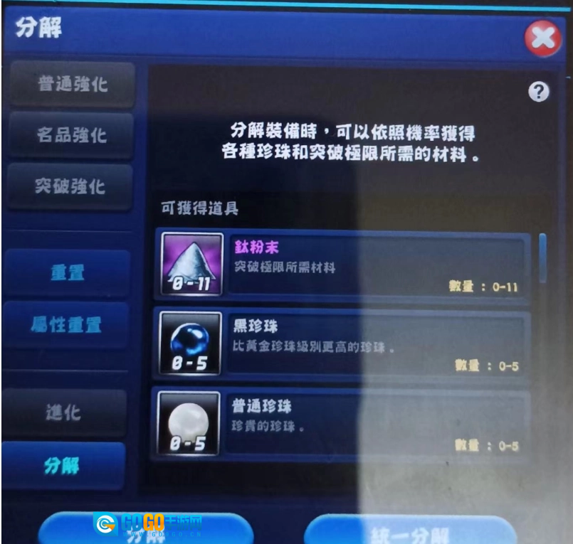 然而我必须说,在突破强化开放後,如此的数值可能新人期还勉强堪用,但对於高阶玩家来说,实已不敷对付全新的游戏环境了,因此进行突破强化有其绝对之必要,突破强化从强化+10的「大鱼加成/OO大鱼奖励」为基础值,每往上突破一级,能力增加0.2%。我建议只要是用来拚大鱼的装备,最低至少也要突破强化至+13以上,可以的话要+15以上。