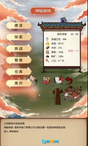 2、开局时把营地里的挑战完成一下,解锁伐木场和金矿,这一步很关键。