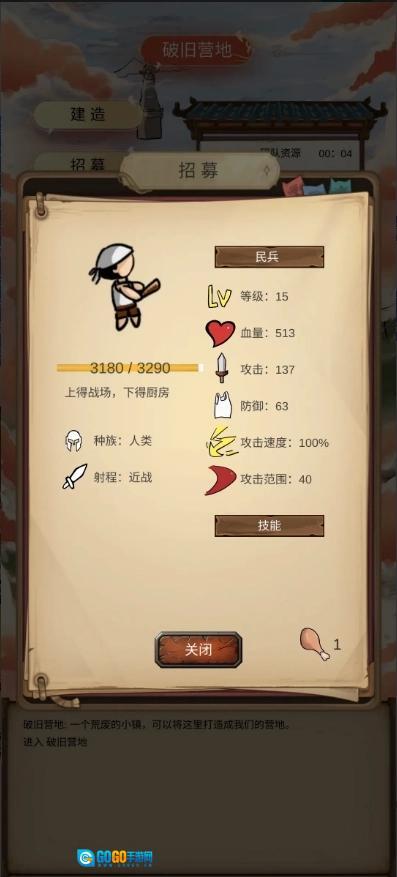 3、接下来可以自由活动,比如在营地里四处探索一番,也可以提升民兵和主角的等级。