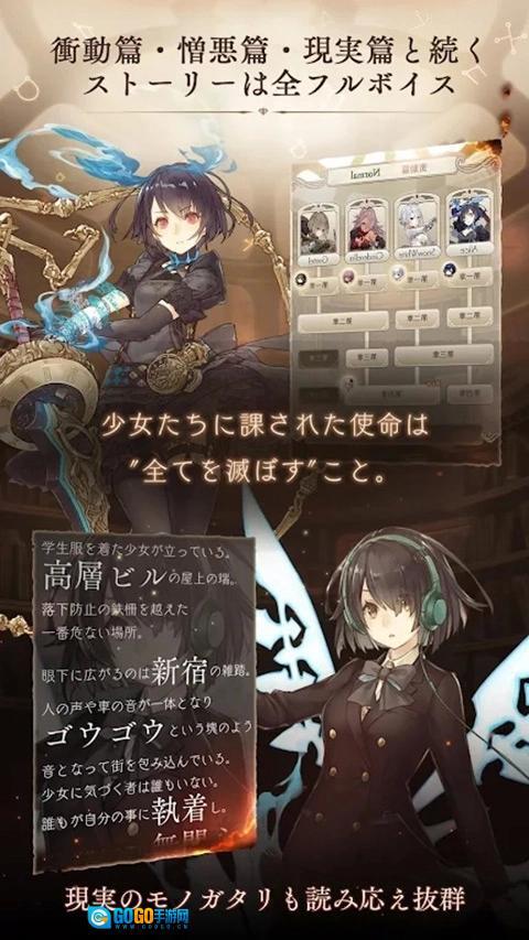 游戏故事背景以一个被囚禁的世界「图书馆」作为舞台,被囚禁的童话角色愿望就是复活童话的作者,同时,游戏有着十分丰富的剧情故事,玩家需要完成其中的各种任务来复活童话的作者,游戏中有着诸多美少女,既有可爱迷人的萌妹子,也有霸气性感的御姐,每个人物都拥有不同的属性,你需要收集各种人物角色来组建强大的卡牌阵容,而且登场的角色可以变换成不同的职业姿态,透过职业故事,还能窥探她们的内心世界。