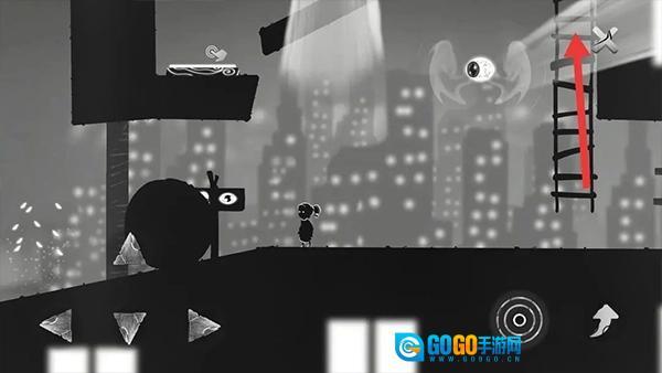 ③将球向左推至石门,再向右爬梯子来到高楼。