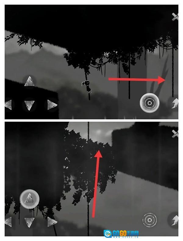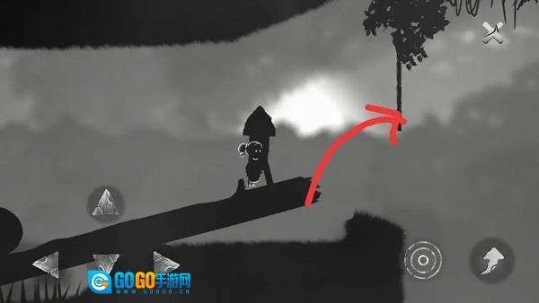 ⑤来到藤条边开启人类返祖现象,学习像猿猴一样荡藤条。注意操纵方向键,使女孩重心倾斜以便离右边的藤条更近
