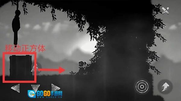 ②左边出现第一关使用过的可移动的正方体。将其向右推至骷髅旁