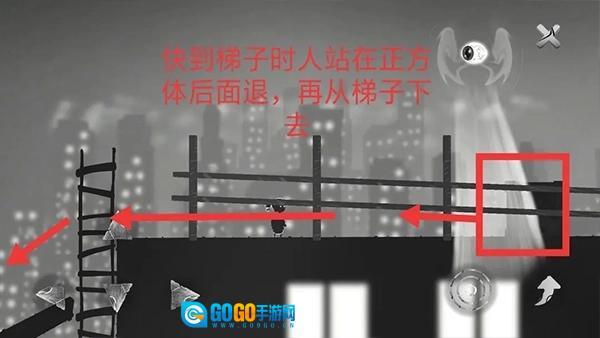 ④将高楼的正方体向左推(建议在正方体的右侧推)因为正方体会沿斜坡滑下触发机关,而小女孩则需沿梯子返回