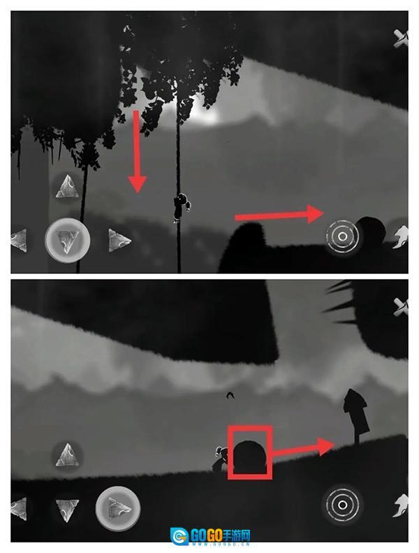 ①将石块推至右边小坡,踩在石块上翻越小坡。注意躲避恶魔。
