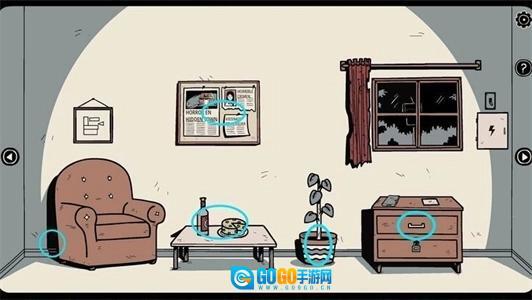 2、拿走抽屉里的磁带、沙发后的钥匙、架子上的笔记本、花盆里的石头。
