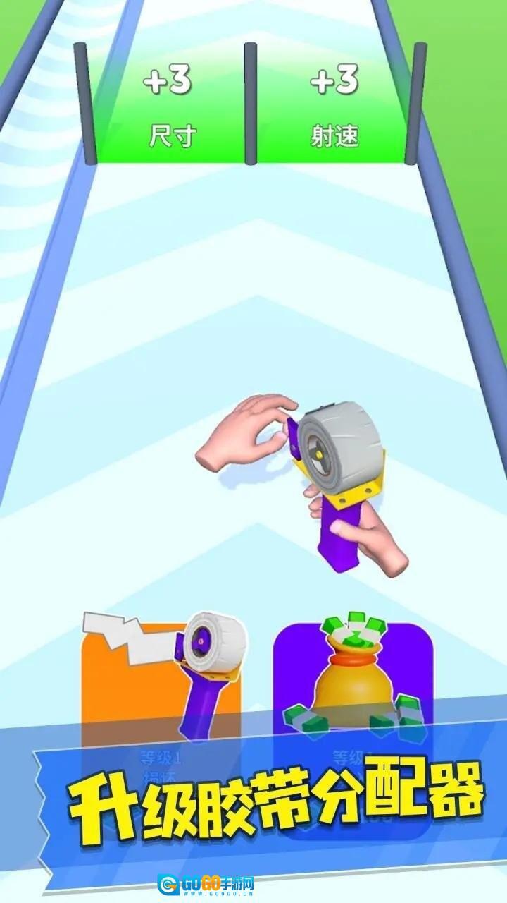 《胶带大师》是一款休闲有趣的酷跑游戏,核心玩法围绕胶带展开,为玩家带来轻松又充满挑战的奔跑体验。游戏中,你需要操控工具将胶带精准发射到盒子上,并根据盒子显示的数量合理分配;同时在前进途中挑选合适的光门类道具,以此提升胶枪性能,帮助自己更快向前奔跑,尽情享受酷跑与策略融合的独特乐趣。