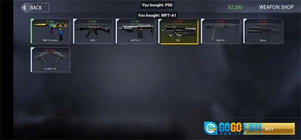 3、游戏启动时,初始配备的武器是手枪,获胜几率不高。你可以点击方向键上方的购物图标,选购更高级别的武器。