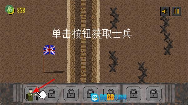 1、招募士兵操作,点击士兵招募按钮,消耗资源获取士兵,扩充己方的战斗力量,为战壕进攻做准备。