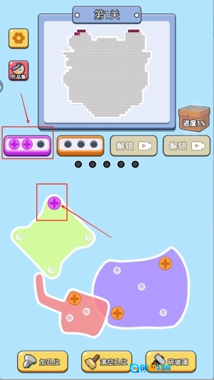 1、螺丝钉数量随图案复杂度增加而变化,考验玩家细致观察力与逻辑思维能力,逐步解开所有螺丝获得成就感。