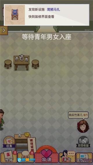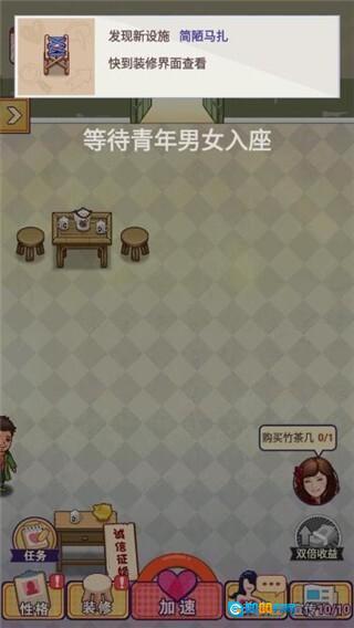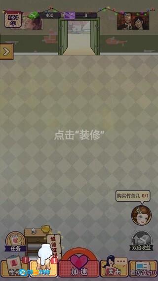 要想经营婚介所,得先买一张桌子。点击“装修”