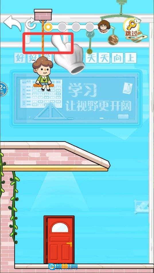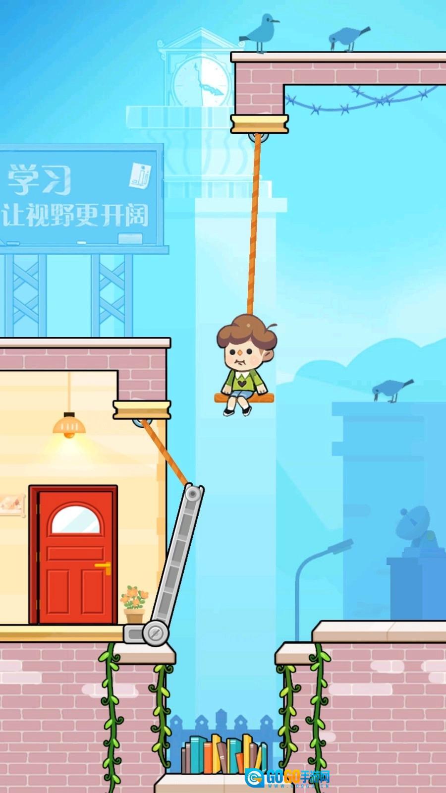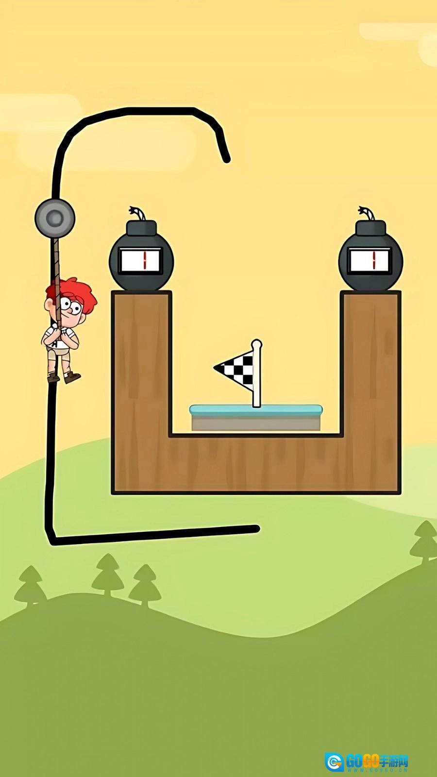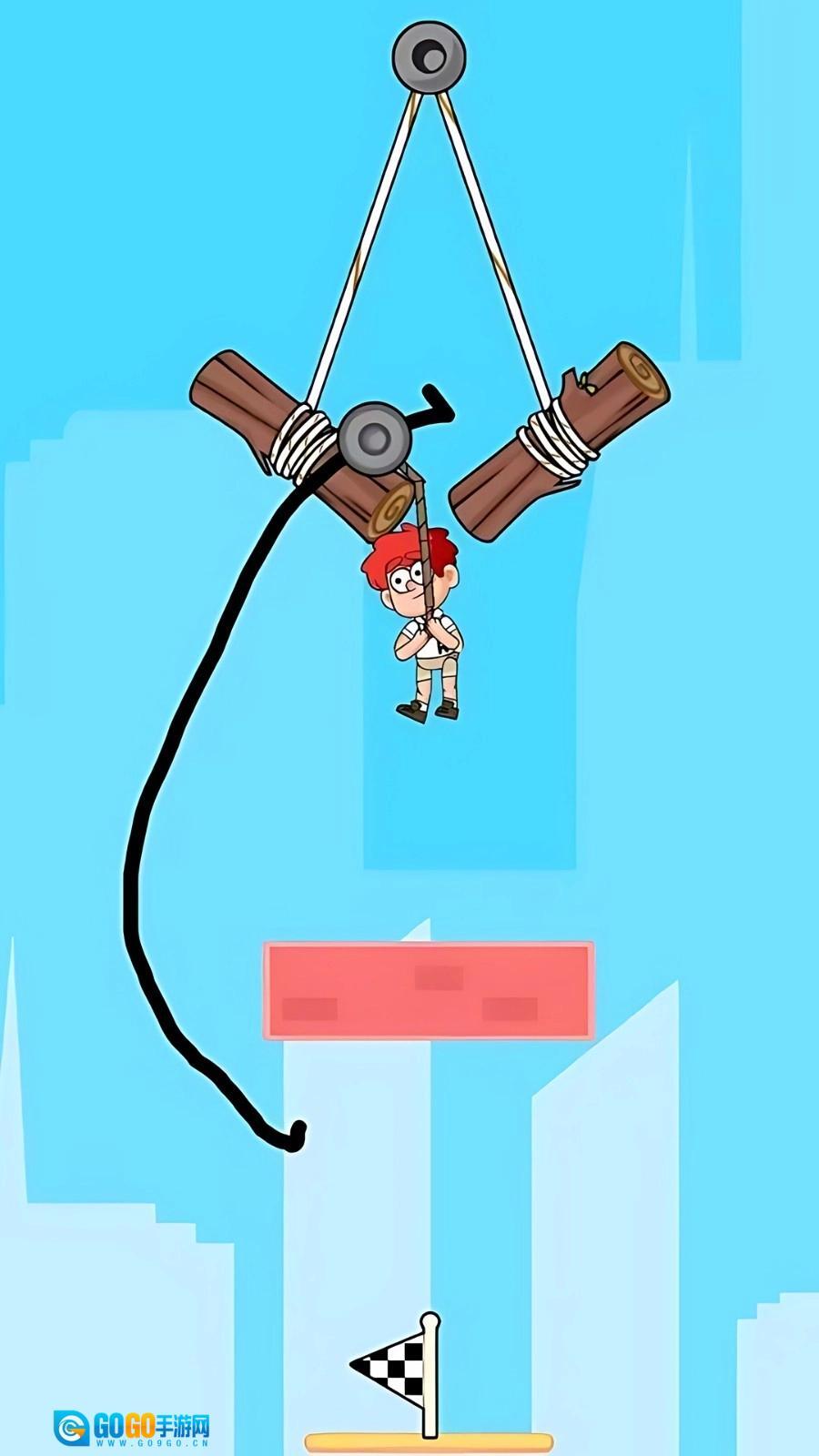 2、当碰到悬挂着的绳索障碍物时,用手指在屏幕上快速滑动,精准切断绳子,帮助角色顺利通过。