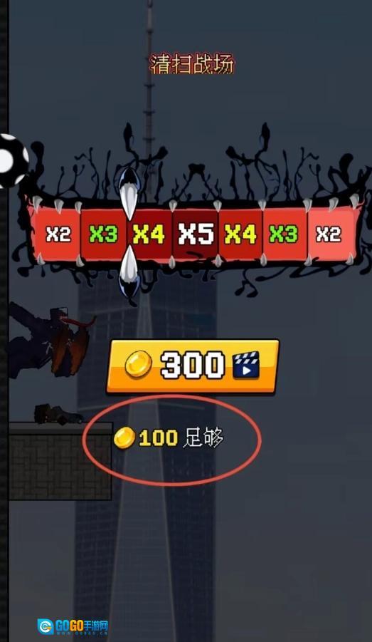 3、战斗界面顶部会显示当前关卡的难度,每一关需要消灭指定数量的敌人方可取得胜利,成功通关后玩家将得到对应的金币奖励。
