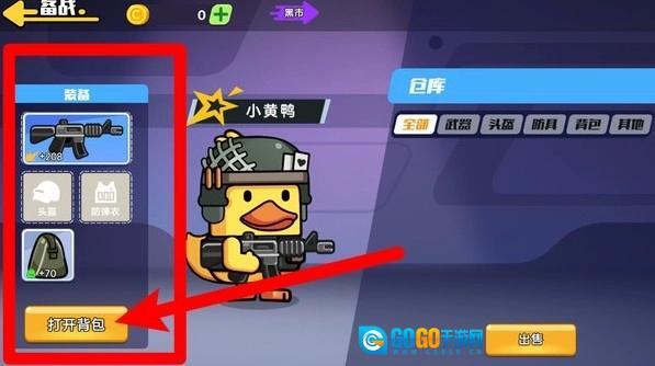 2.角色背包系统:借助背包按钮可快速查看与切换武器装备,助力鸭鸭提升战斗能力以应对敌人。