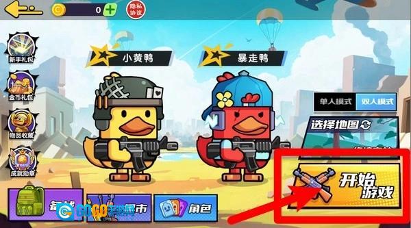 1.游戏启动界面:挑选心仪的鸭鸭角色开启双人模式,点击开始游戏按钮即可即刻展开紧张刺激的对战。