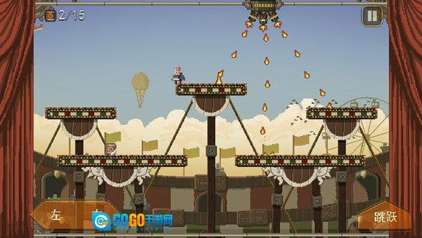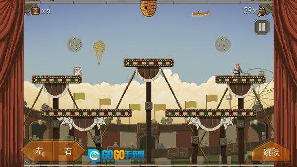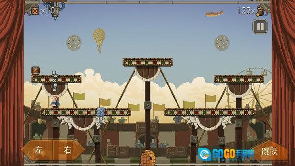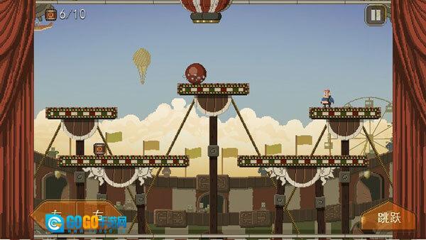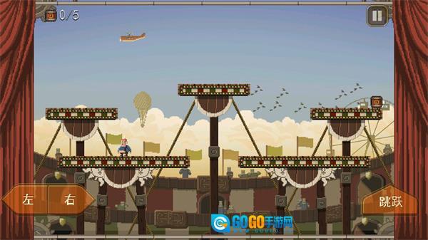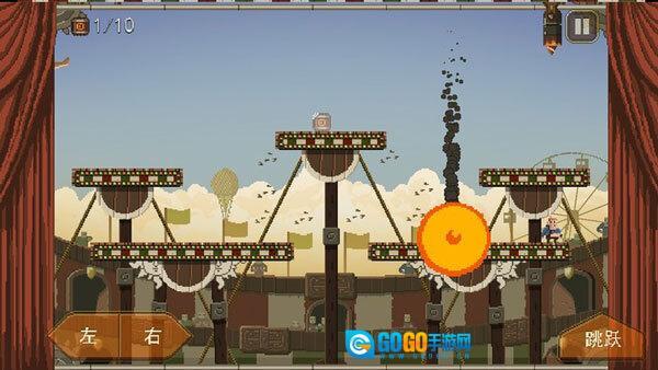 在这款游戏里,我们陷入了一场荒诞的马戏团表演,得躲开所有陷阱活下去,成为最终的赢家。接下来先让我们看看游戏的操作方式:点击屏幕下方标着左右箭头的按钮,就能控制角色向左或向右移动;点击跳跃按钮,角色就会跳起来,要是连续点两下,还能触发二段跳。按钮的位置可以在设置页面里调整,操作起来并不难,现在我们就进入游戏吧。