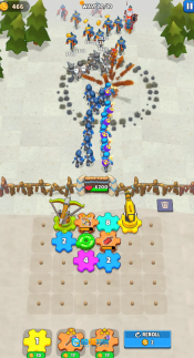 2、招募士兵,根据装备属性进行搭配以组建军队,同时借助战斗来获取资源,进而实现军队的升级。