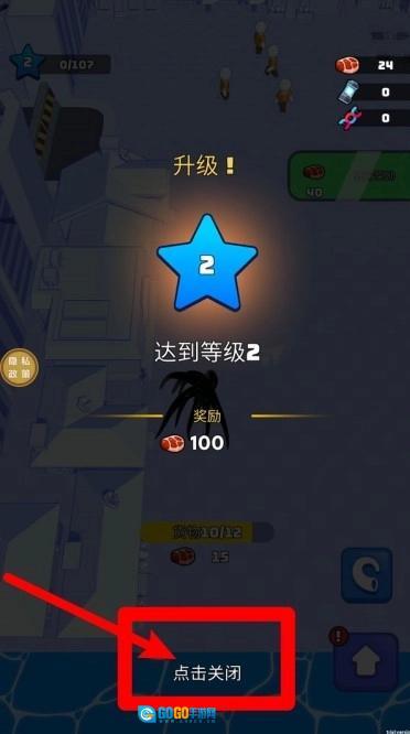 1.升级提示:当达到新等级时,界面中央会弹出升级提示,显示当前等级与奖励数量,玩家点击下方按钮即可关闭并继续游戏。