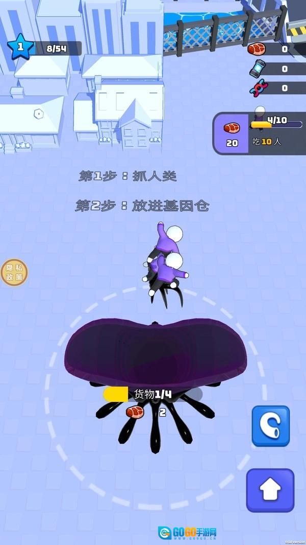 2.能量收集:不断吞噬周围的人类与物体,积累能量条来完成进化,每次进化都能获得更高破坏力与新的技能效果。