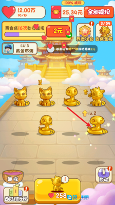 《天官送福》是一款轻松休闲的合成类小游戏,游戏以纯金打造的各式小动物为核心元素,玩家只需通过简单的合成操作,就能逐步解锁更多造型的小动物,赢取丰厚的合成奖励。每当解锁全新的小动物时,都能收获颇为丰厚的奖励,同时还能完成简易的合成任务,获取更多惊喜福利。整个游戏过程操作简单,轻松合成,让玩家尽情享受解压又有趣的合成乐趣!